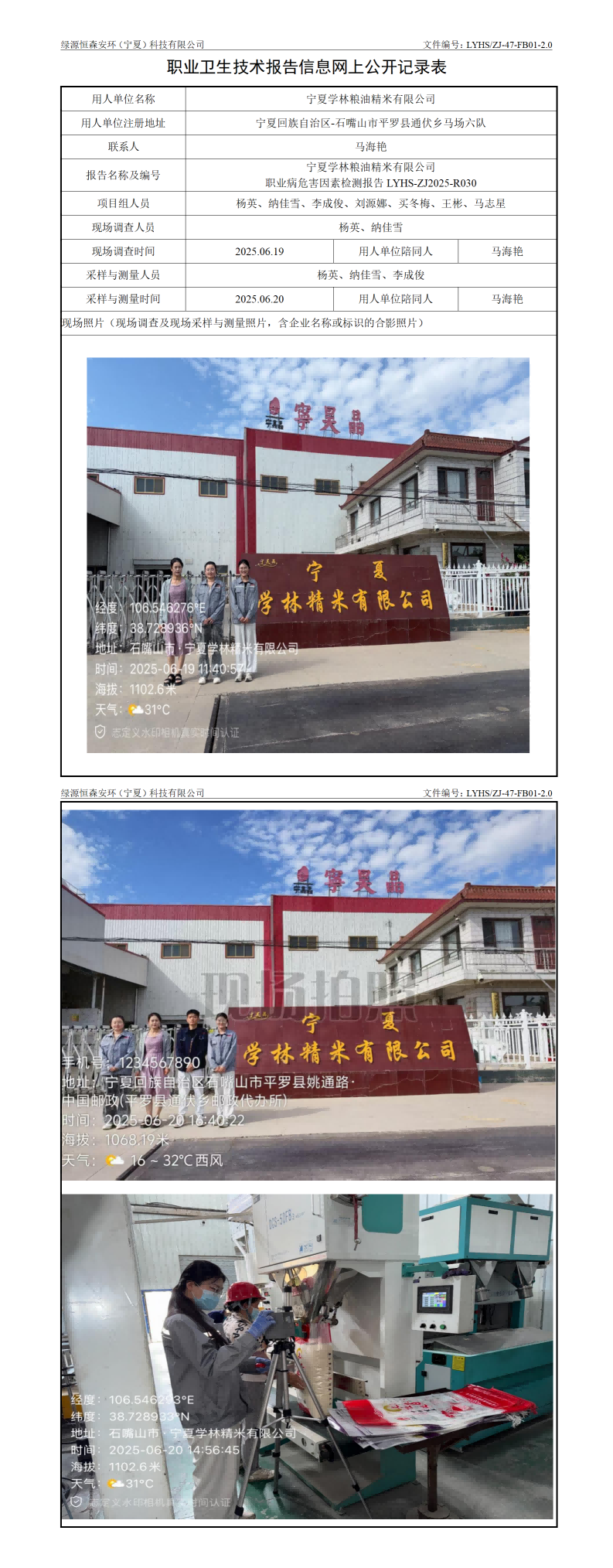 寧夏學(xué)林糧油精米有限公司職業(yè)衛(wèi)生檢測報告信息公開表