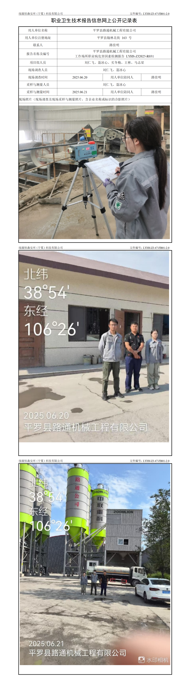 平羅縣路通機(jī)械工程有限公司職業(yè)病危害因素檢測(cè)報(bào)告信息公開(kāi)表
