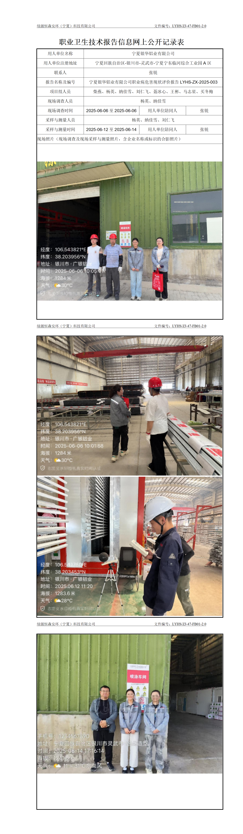 寧夏銀華鋁業(yè)有限公司職業(yè)病危害現(xiàn)狀評價報告職業(yè)衛(wèi)生技術報告信息網(wǎng)上公開表