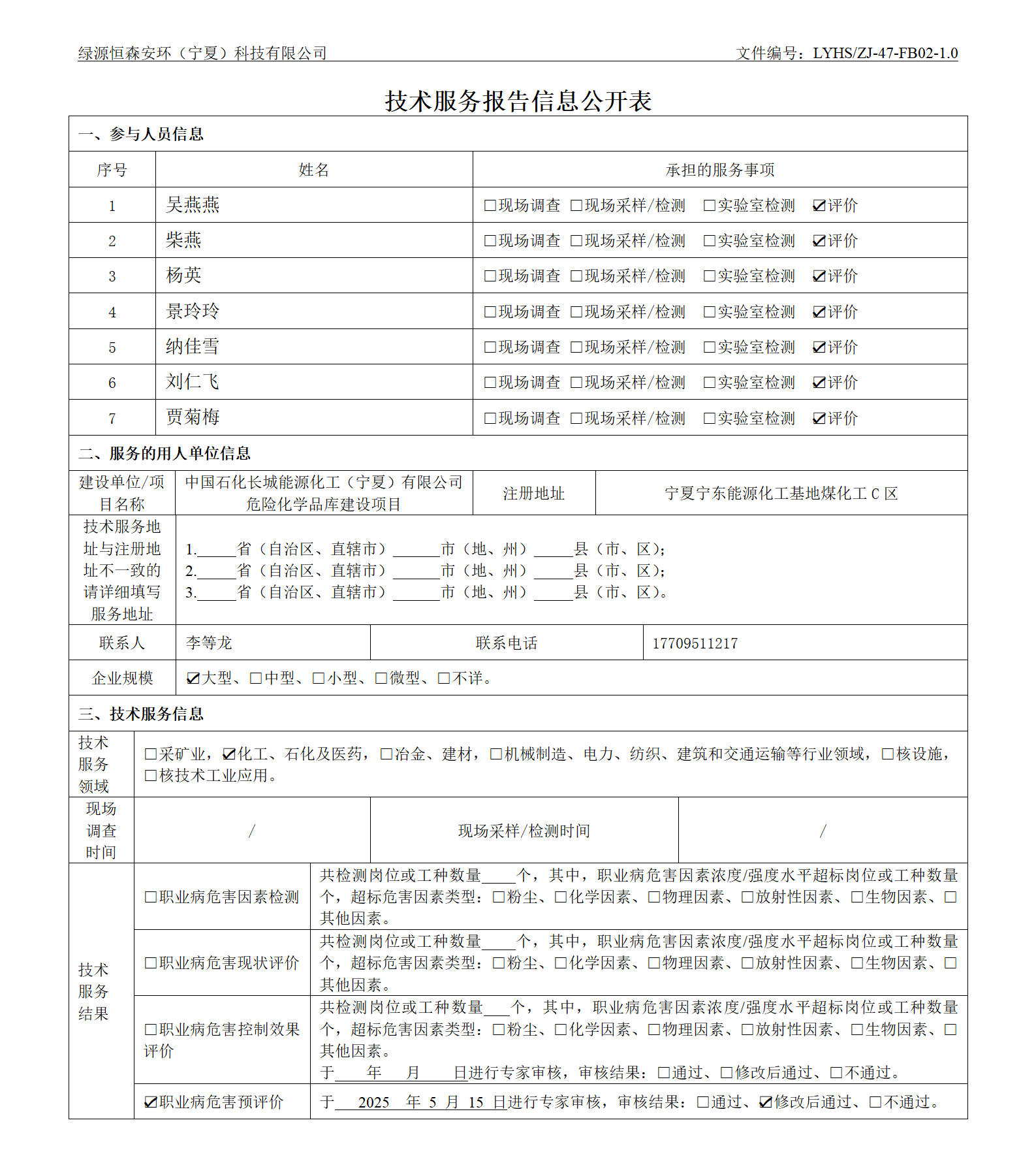 中國石化長城能源化工(寧夏)有限公司危險(xiǎn)化學(xué)品庫建設(shè)項(xiàng)目技術(shù)服務(wù)報(bào)告信息公開表