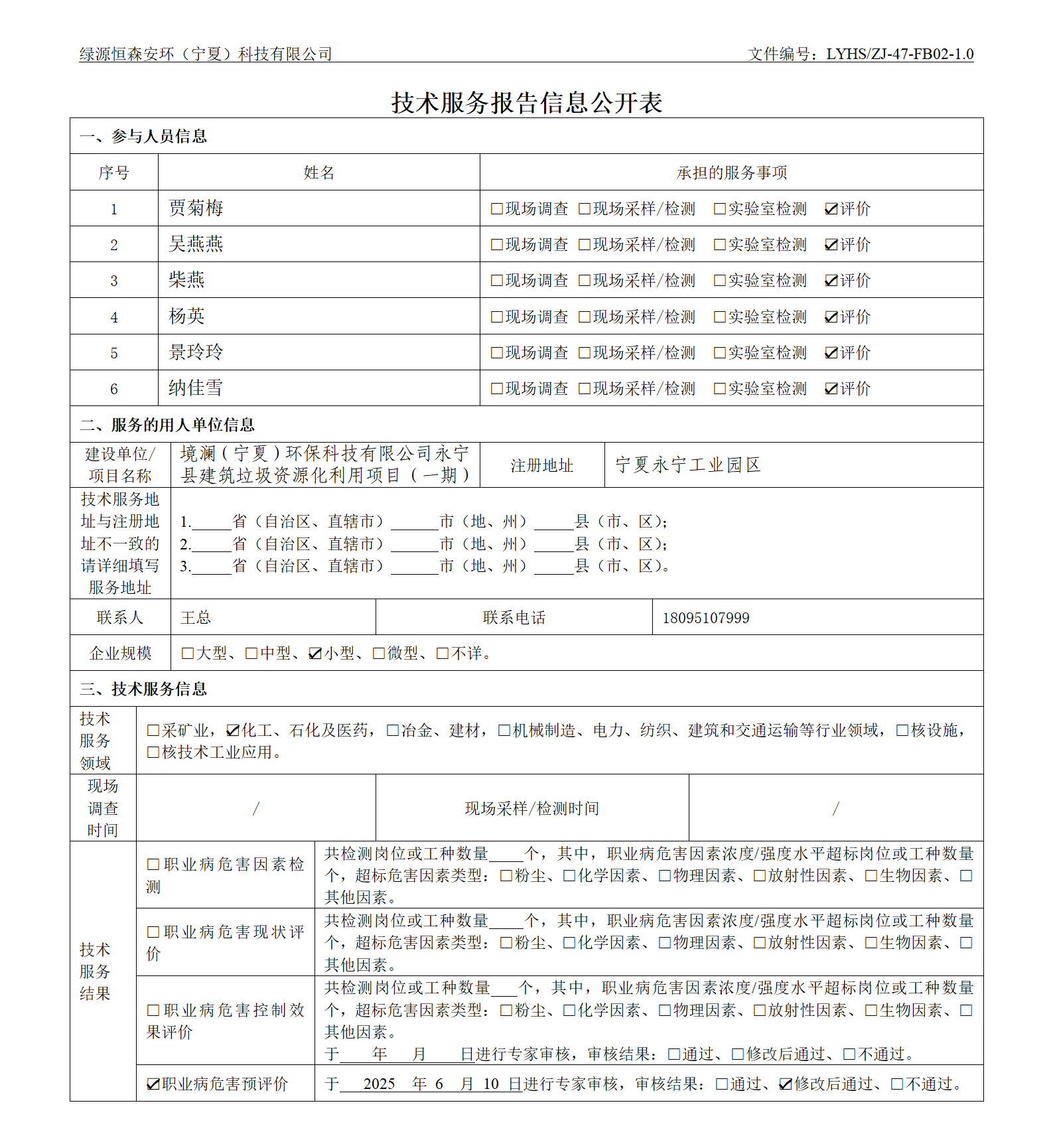 境瀾(寧夏)環(huán)保科技有限公司永寧縣建筑垃圾資源化利用項(xiàng)目(一期)技術(shù)服務(wù)報(bào)告信息公開表